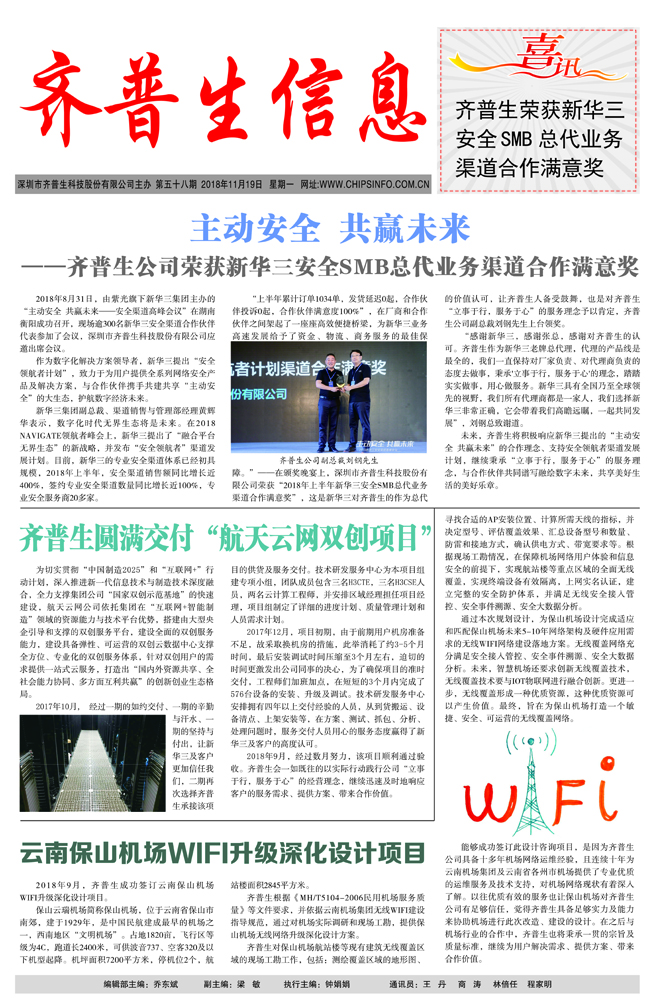 主動(dòng)安全 共贏未來 ——齊普生公司榮獲新華三安全SMB總代業(yè)務(wù)渠道合作滿意獎(jiǎng)