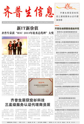 新IT 新價(jià)值 齊普生榮獲“H3C 2014年優(yōu)秀總代理”大獎(jiǎng)
